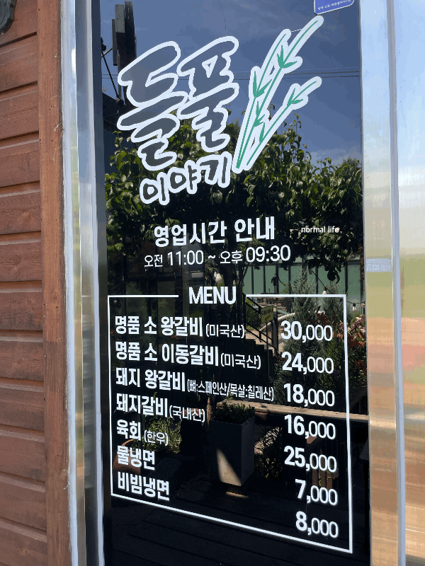 소갈비는 물론 돼지갈비도 맛볼 수 있는 들풀 숯불갈비이다. #명품 소 왕갈비(미국산) 30,000원 #명품 소 이동갈비(미국산)24,000원 #돼지 왕갈비(스페인산, 칠레산) #돼지갈비(국내산) 16,000원이다.