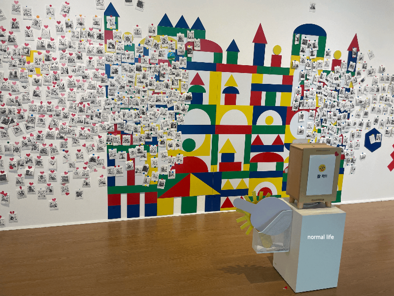 다양한 색과 무늬의 그래픽 조각들을 자유롭게 오리고 붙이며 나만의 작품을 완성할 수 있는 '꼴라주 조각방'이다.