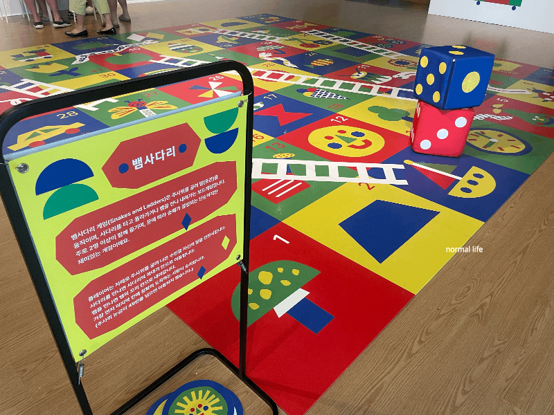 '아이처럼 BE CHILD' 전시실 2는 그래픽 체험존이다. 그래픽 영상존, 그래픽 보드게임-체스, 땅따먹기, 뱀사다리, 꼴라주 조각방, 그래픽 포토박스를 체험할 수 있다.