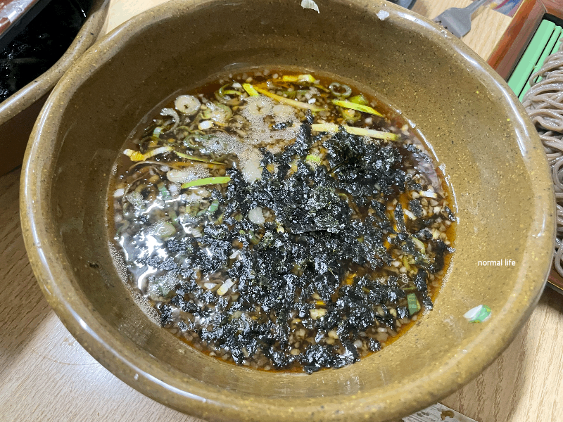 반월소바의 대표메뉴 소바이다. 육수에는 파, 김, 무즙이 넉넉히 들어가 있어 단짠단짠함을 더했다. 일반적으로 우리가 맛보던 소바는 소스에 면을 살짝 담갔다 맛보는 일본식 소바이다. 반월소바는 넉넉한 양의 육수가 제공돼 메밀면을 한 번에 말아먹는 반월식 소바이다. 착한 가격 8,000원으로 두 명이서 함께 맛보아도 넉넉한 메밀소바였다.