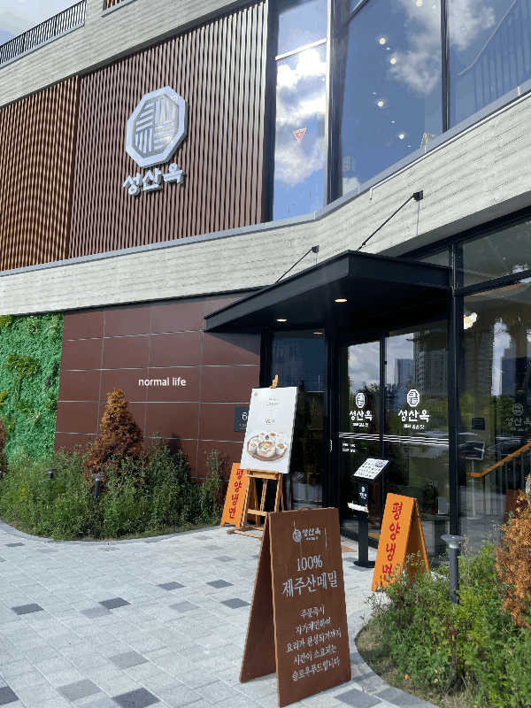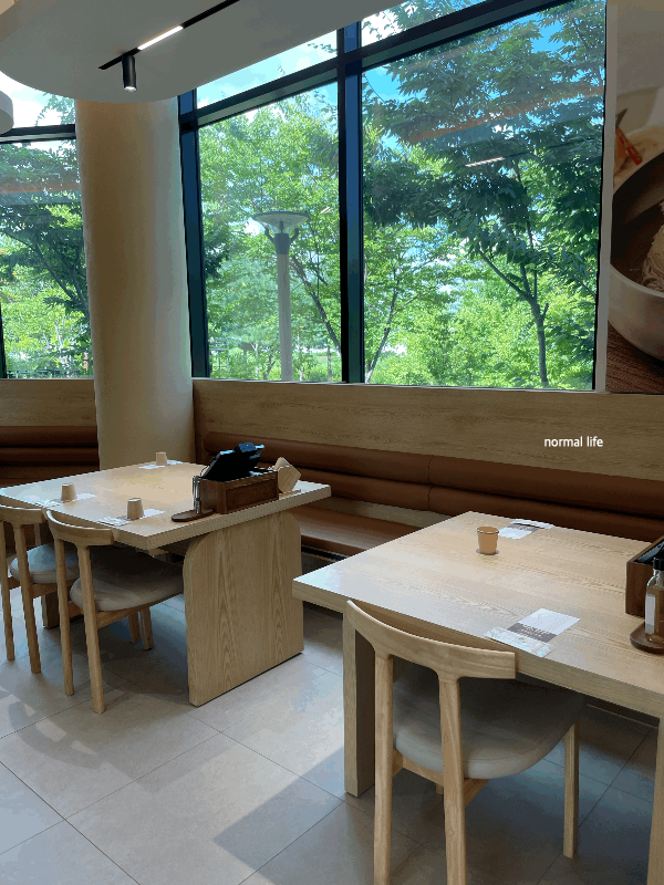 2025년 여름 오픈한 지 얼마 안 된 성산옥 세종예술의전당점이다. 우드톤의 감각적인 내부와 창밖 너머로 보이는 푸릇한 호수공원뷰가 여유롭다.