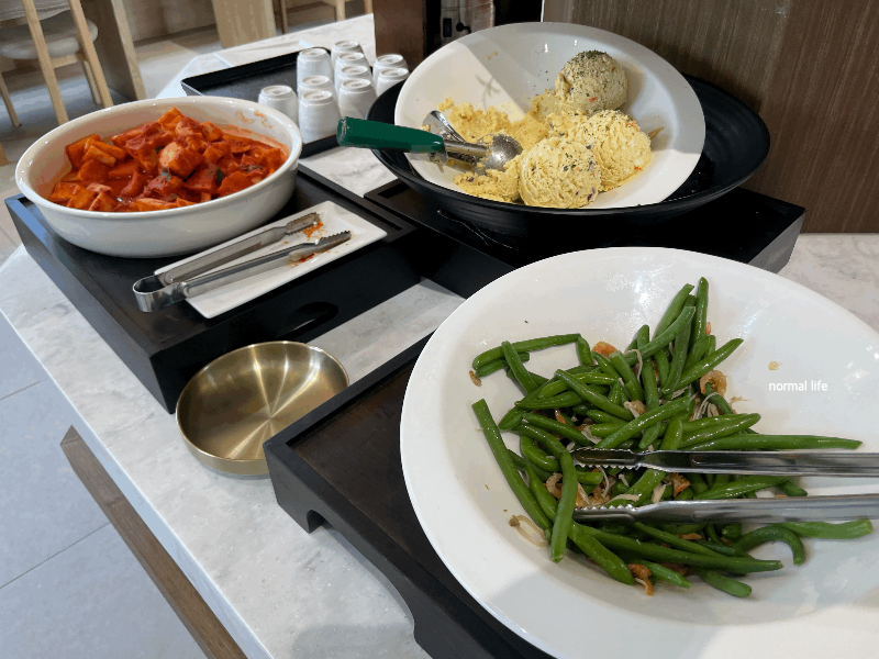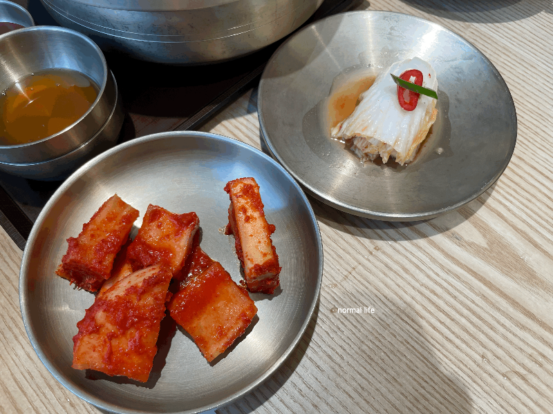 성산옥 셀프바에는 온육수, 섞박지, 고구마샐러드, 그린빈이 준비되어 있어 자유롭게 맛볼 수 있다. 산지직송 식재료와 한식 전통 레시피로 만드는 슬로우푸드 전문점 성산옥으로 음식을 나오는데 시간이 소요된다. 음식이 준비되는 동안 온육수와 고구마샐러드, 그린빈을 맛보며 여유롭게 기다렸다.