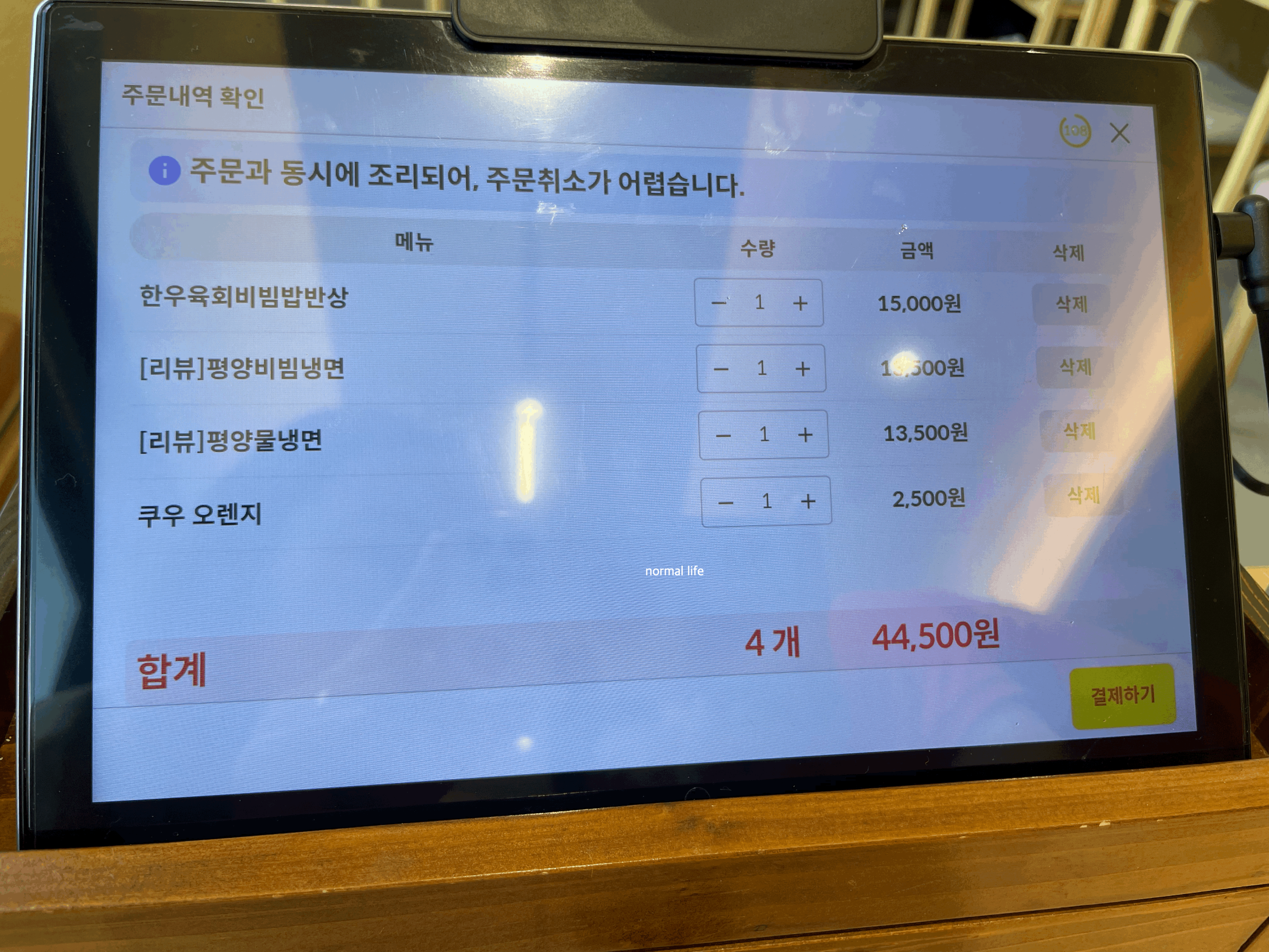 식사 후 네이버 리뷰 시 할인 이벤트 중인 성산옥이다. 테이블오더시 할인 된 가격의 리뷰메뉴를 주문하고 리뷰작성을 하면 할인 이벤트에 참여할 수 있다.