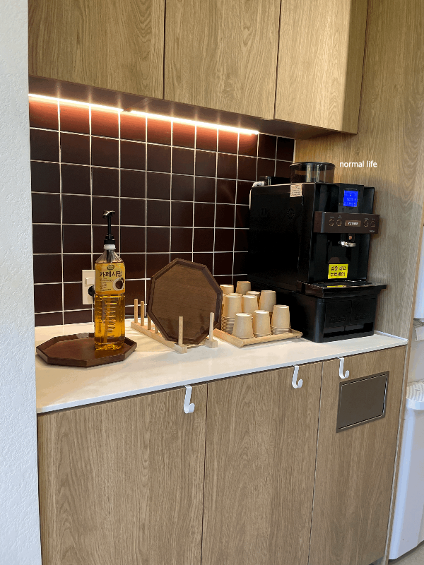 식사 후 후식으로 즐길 수 있는 커피머신도 준비되어 있다. 든든한 한식을 즐긴 후 여유롭게 원두커피까지 즐길 수 있었다. 식전 입맛을 돋울 샐러드와 식후 커피까지 완벽한 성산옥이다.