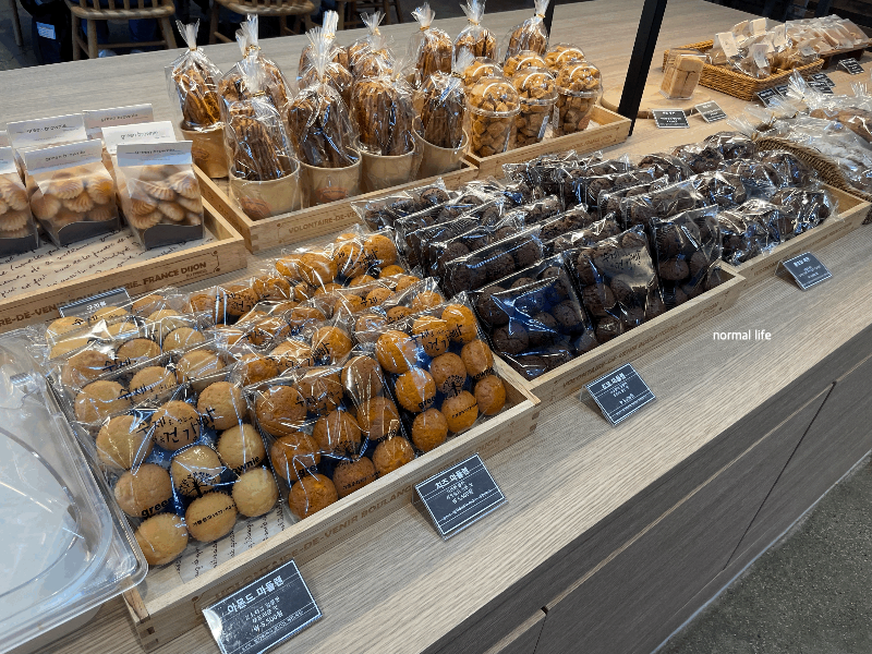 마들렌, 머핀, 카스테라, 단팥빵, 깜파뉴, 호밀무화과, 코요타, 치즈쿠키, 레몬쿠키, 아몬드카페쿠키, 쇼콜라누아쿠키, 우리밀 단호박약과 등 가족 모두가 좋아할 만한 베이커리들이 다양하게 준비되어 있다.