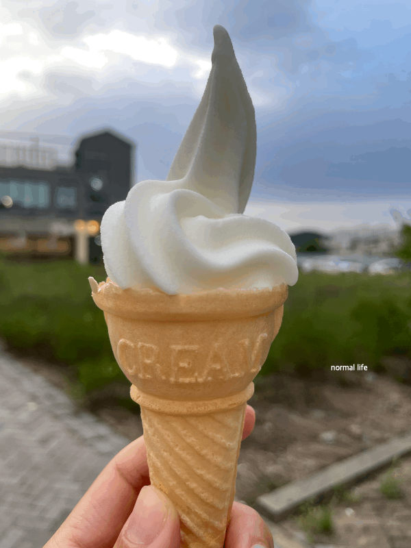 식사 후 즐길 수 있는 달콤한 과일과 커피, 소프트아이스크림이 준비되어있다. 담백하고 고소한 한돈대패를 즐긴 후 시원하고 달콤한 소프트아이스크림으로 마무리하는 제이포크축산 명품대패에서의 가족 외식이었다.