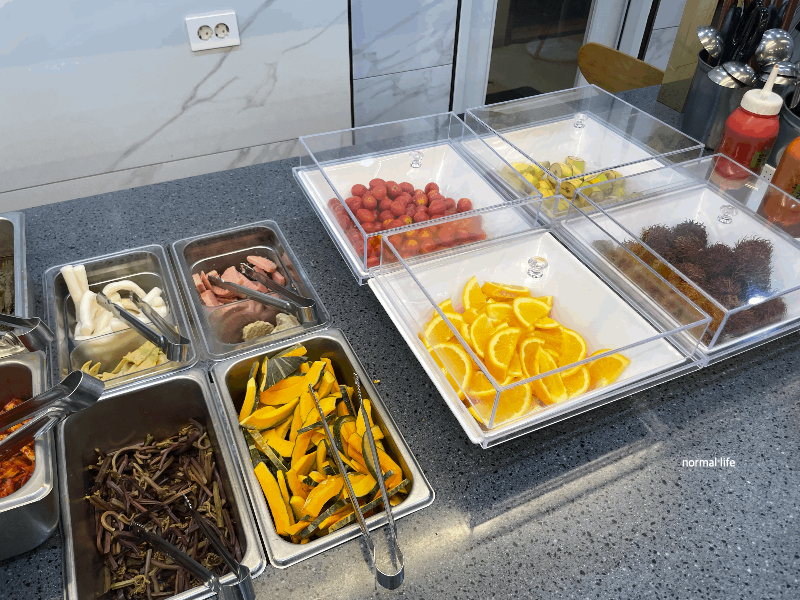 식사 후 후식으로 달콤하고 신선한 방울토마토, 오렌지, 바나나, 람부탄을 맛볼 수 있다.