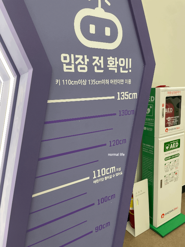 AI 어드벤처는 안전상의 이유로 키 110cm 이상 135cm 이하의 어린이만 이용이 가능하다. 입장 전 어린이 키 확인 후 입장이 가능하다.