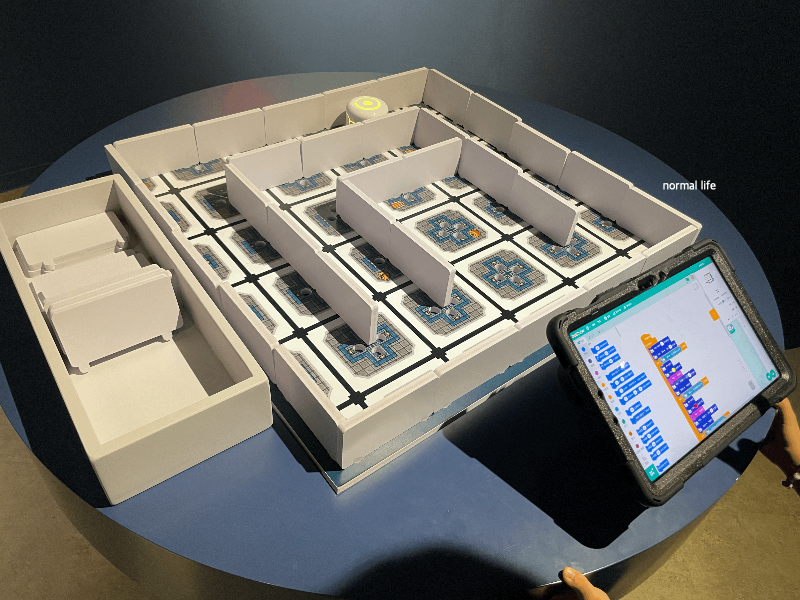 블록코딩 앱을 사용하는 미로게임이다. 미로게임 방법은 1. 보드 구명에 벽을 끼운다. 2. 블록코팅 앱에서 로봇 움직임 코딩을 정해준다. 3. 나만의 코딩으로 미로를 탈출한다.
