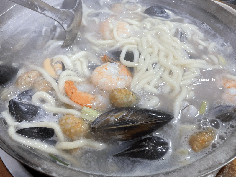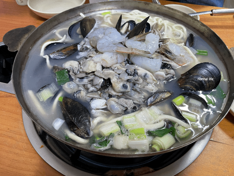 해물칼국수 1인분 15,000원이 비싼 감이 없이 않아 있지만, 어마어마한 크기의 냄비와 가득 올라간 신선한 해물들을 보니 합리적인 가격이라고 생각이 들었다.