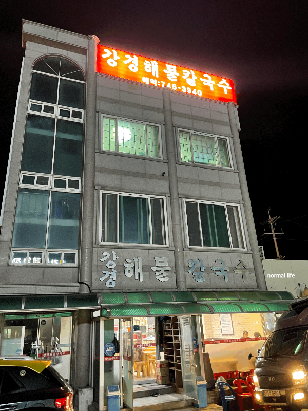 유명 맛집 사장님들은 보통 불친절한데 친절한 여사장님이 인상적인 강경해물칼국수이다. 저녁식사시간에 방문하여 해물칼국수를 맛보기 위한 손님들이 가득했으나 친절한 사장님의 안내로 자리에 착석하였다. 1층과 2층으로 매장은 넓었으며 포장도 가능한 강경해물칼국수이다.