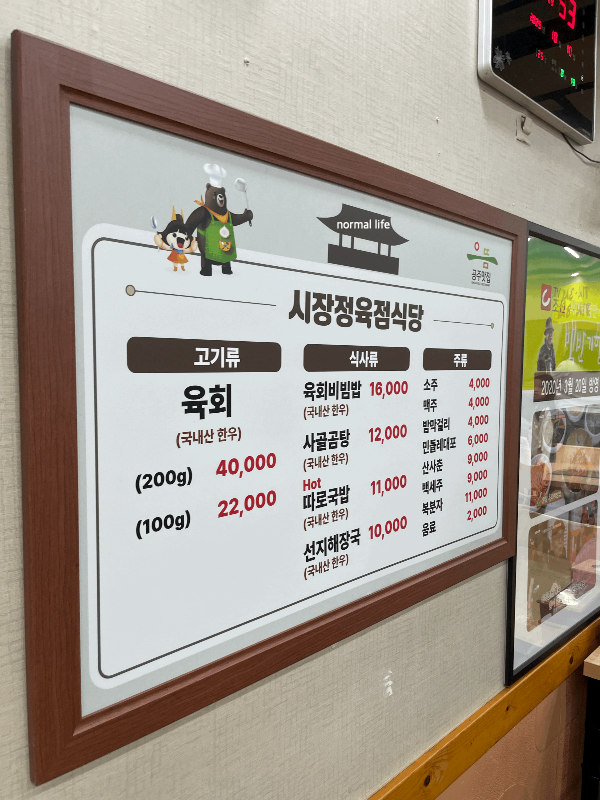 3. 시장정육점식당 메뉴와 가격