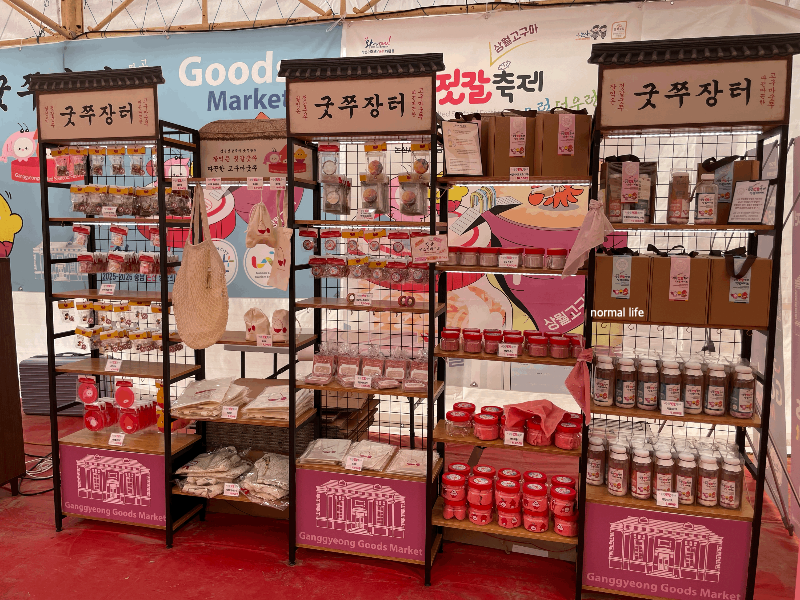 젓갈체험장 한편에 강경젓갈의 굿즈인 굿쭈장터가 마련되어 있었다. 잘 익은 젓갈 굿쯔와 따끈따끈한 고구마 굿쯔가 아기자기하니 눈길을 끈다.