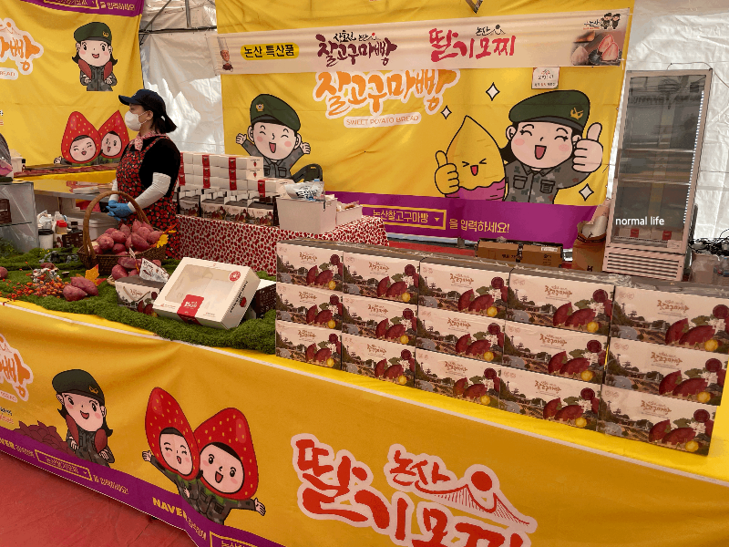 논산의 또 다른 특산물 상월고구마 판매장도 마련되어 있었다. 논산시 상월면은 유기물과 미네랄이 풍부한 황토흙으로 고구마 재배하기에 최적의 환경이라고 한다.