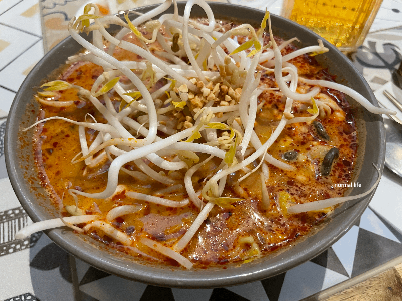 세계 3대 요리 중 하나인 똠양꿍에 쌀국수 면을 넣어 먹는 똠양쌀국수이다. 태국어로 똠은 '끓이다' 얌은 ' 새콤한 맛'으로 시큼, 향긋한 매력 가득한 똠양꿍이다. 돼지등뼈와 사골로 우려낸 구수한 국물에 태국 고추와 레몬그라스, 갈랑가로 시큼하면서 얼큰한 똠양 특유의 매력이 가득 맛볼 수 있다. 강렬한 향과 중독적인 국물 맛과 쌀국수의 조화가 훌륭한 똠양쌀국수이다.