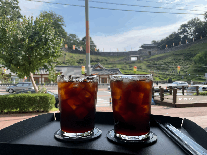 조용한 테이블 너머로 공산성의 전경이 보이는 운치 가득한 공다방이다. 향긋한 브루잉 커피와 설렘 가득한 여행객을 바라보며 잠시 한숨을 돌리는 힐링의 시간이었다.