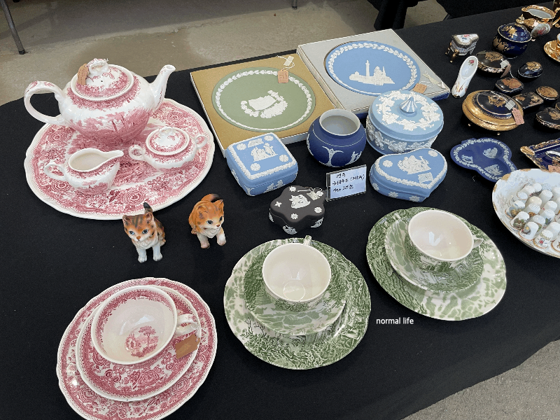 빈티지 찻잔 프리마켓에는 예쁜 티세트와 접시를 구입하는 사람들로 가득했다. 예쁜 색감의 웻지우드가 눈길이 간다.
