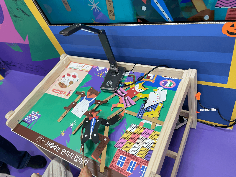 이야기 극장의 주인공 종이인형을 선택하여 스스로 만들어볼 수 있다. 달달과수원의 농부'단단' 훨훨양복점의 재단사 '수리' 표정미술관의 화가 '묘미' 이야기극장의 감독 '몽몽' 조각조가집의 건축가 '웅이' 중 한 가지 선택이 가능하다. 6살 딸아이는 표정미술관의 화가 묘미를 선택하였다.