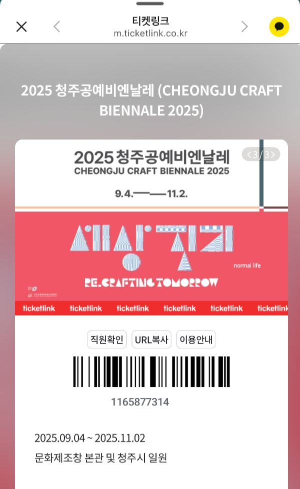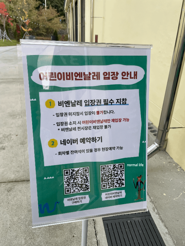 어린이비엔날레는 네이버에서 예약과 2025 청주공예비엔날레 입장권 모두 완료 후 입장이 가능하다. 회차별 잔여석이 있을 경우 현장에서 입장이 가능하다.