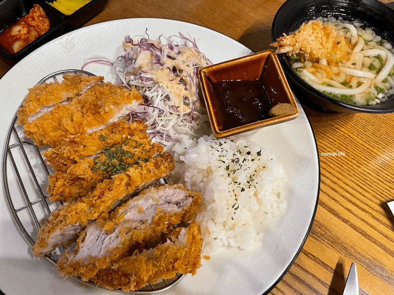 신선한 등심을 가조쿠 양념에 반나절이상 저온 숙성시킨 후 주문과 동시에 튀겨낸 돈까스이다. 바삭바삭하면서 풍부한 육즙이 가득한 부드러운 등심돈까스이다. 돈까스를 한입 물면 바삭하게 부서지는 식감이 매력적이다. 돈까스정식은 돈까스와 미니 우동이 제공돼 든든한 한 끼를 즐길 수 있다.