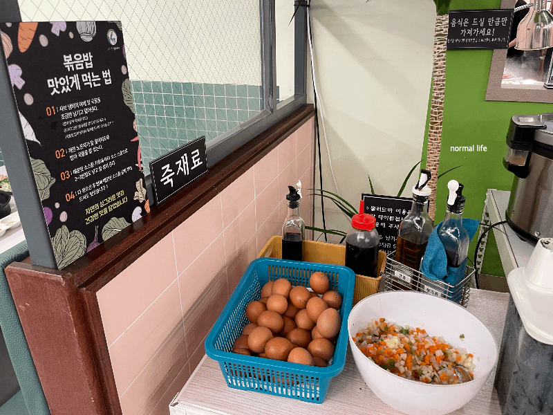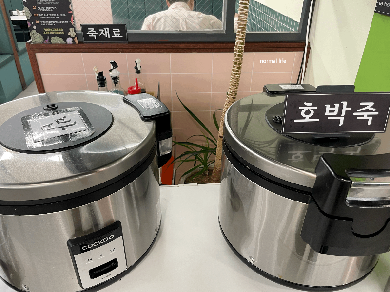 애피타이저로 즐길 수 있는 호박죽과 볶음밥, 죽을 직접 만들어 맛볼 수 있는 쌀밥이 준비되어 있다.