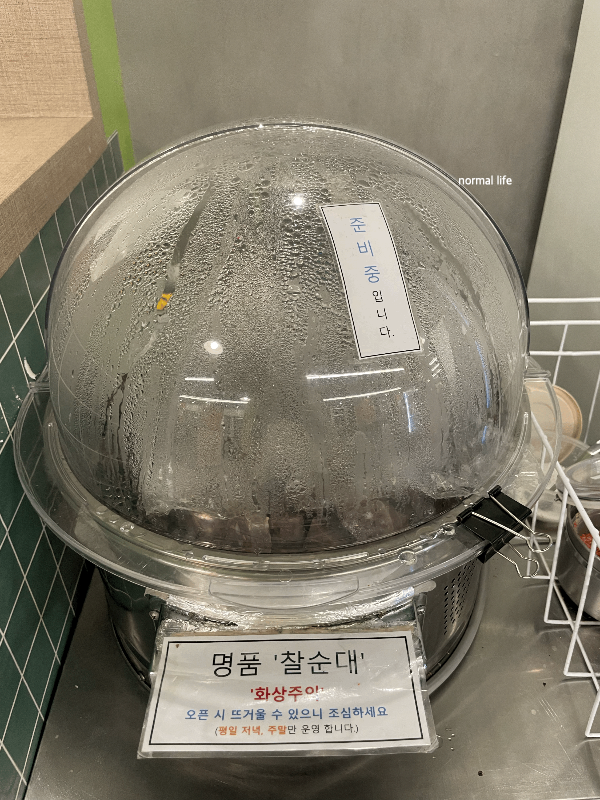 모두가 좋아하는 분식메뉴 찰순대도 맛볼 수 있다. 당면이 알차게 들어있는 찰순대를 따뜻하게 바로 맛볼 수 있도록 찜기에 준비되어 있다. 함께 준비된 쌈장이나 소금에 찍어 더욱 맛있게 맛볼 수 있다.