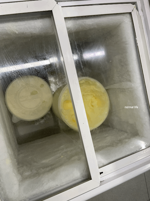 아이들이 좋아하는 후식 메뉴 바닐라아이스크림이 준비되어 있다.
