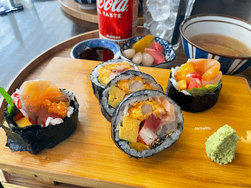 한국의 김밥과 유사한 비주얼의 후토마끼이다. 후토마끼는 스시의 한 종류로 참치붉은살, 오이, 박고지, 단무지의 속재료와 밥에 배합초로 간을 해 김밥과는 꽤나 다른 맛을 맛볼 수 있다.