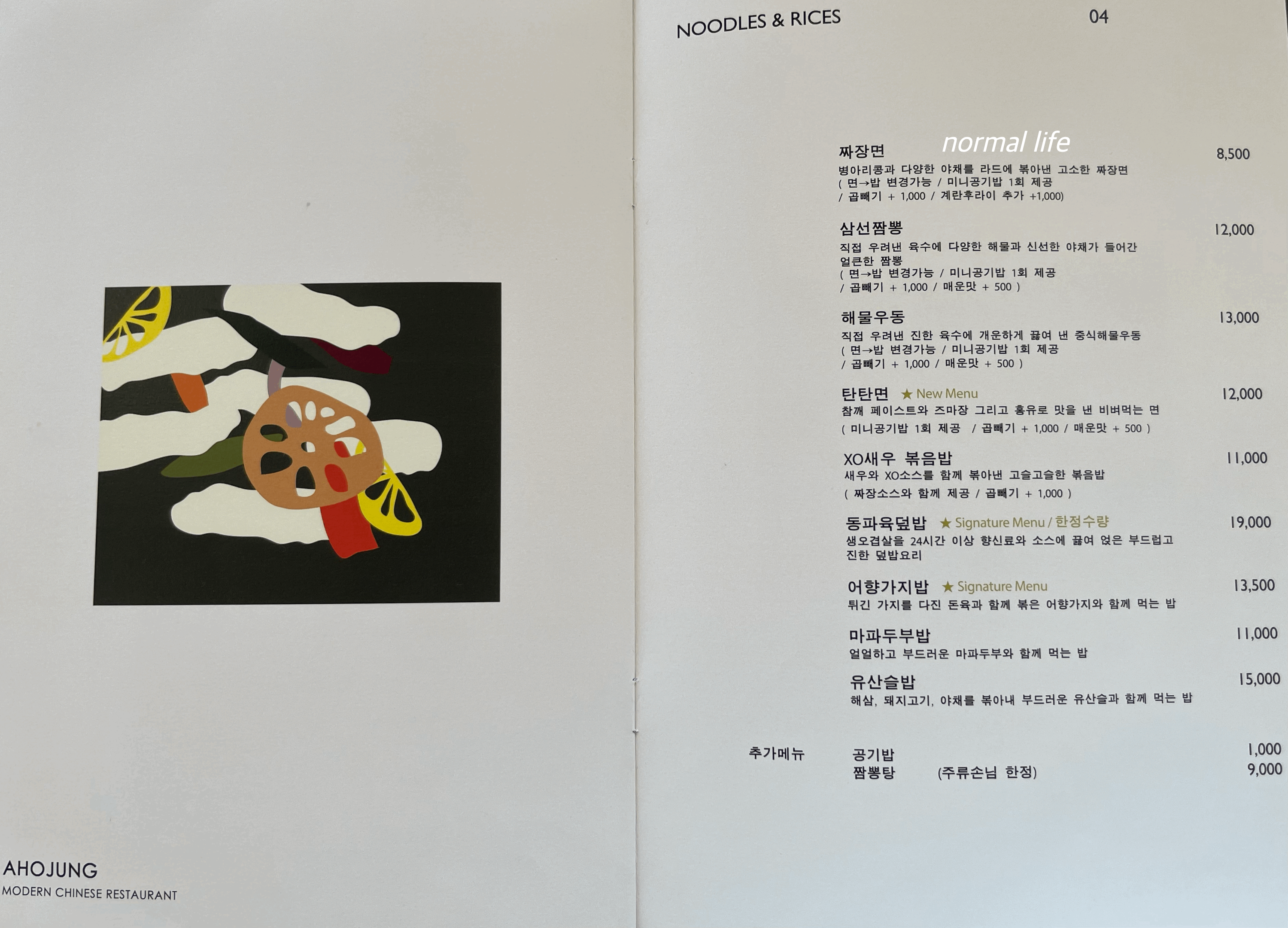 모던 차이니즈 레스토랑답게 참깨 페이스트, 즈마장과 홍유 소스를 비벼 먹는 #사천 청두식 탄탄면과 연두부에 아호정 특제 홍유소스를 곁들여 먹는 #홍유두부와 같은 새로운 메뉴도 만날 수 있다. 아호정의 시그니쳐 메뉴인 #멘보샤 #유린기 #어향가지를 선택해서 맛볼 수 있는 세트메뉴도 인기가 있다. 특히 아호정의 멘보샤는 애정하는 메뉴이다. 통통한 알새우가 빵사이에 가득 들어간 멘보샤가 테이블에 나오면 따뜻할 때 바로 맛보면 새우살이 탱글탱글 살아있어 더욱 맛있게 먹을 수 있다. 입안 가득 꽉 차는 아호정 멘보샤의 맛은 너무도 훌륭했다.