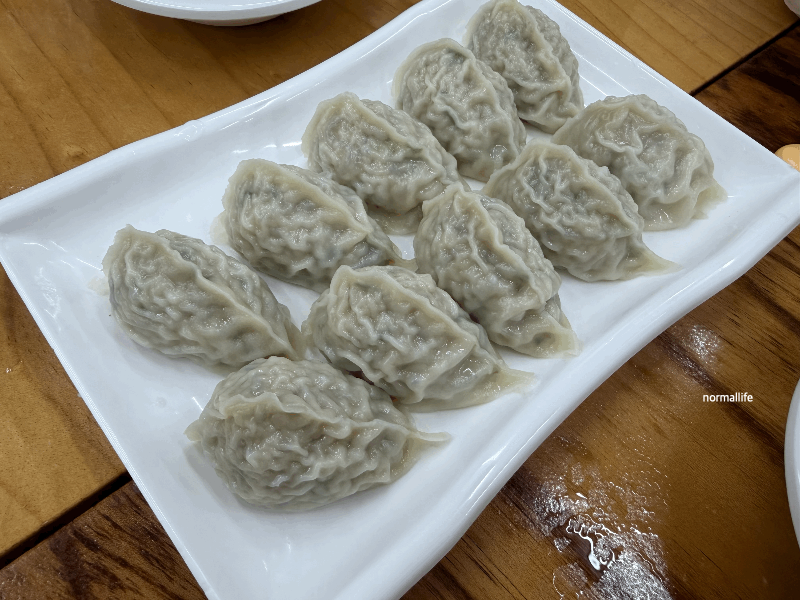 갓 쪄낸 따끈한 고기만두가 접시 가득 나오는데 칼국수와 함께 먹으면 궁합이 훌륭하다. 피는 얇고 쫄깃하면서도 속은 꽉 차 있어 한 입 베어 물면 육즙이 은은하게 퍼진다. 고기와 야채가 균형 있게 들어가 있어서 느끼함도 없어 부담 없이 먹기 좋은 만두이다.