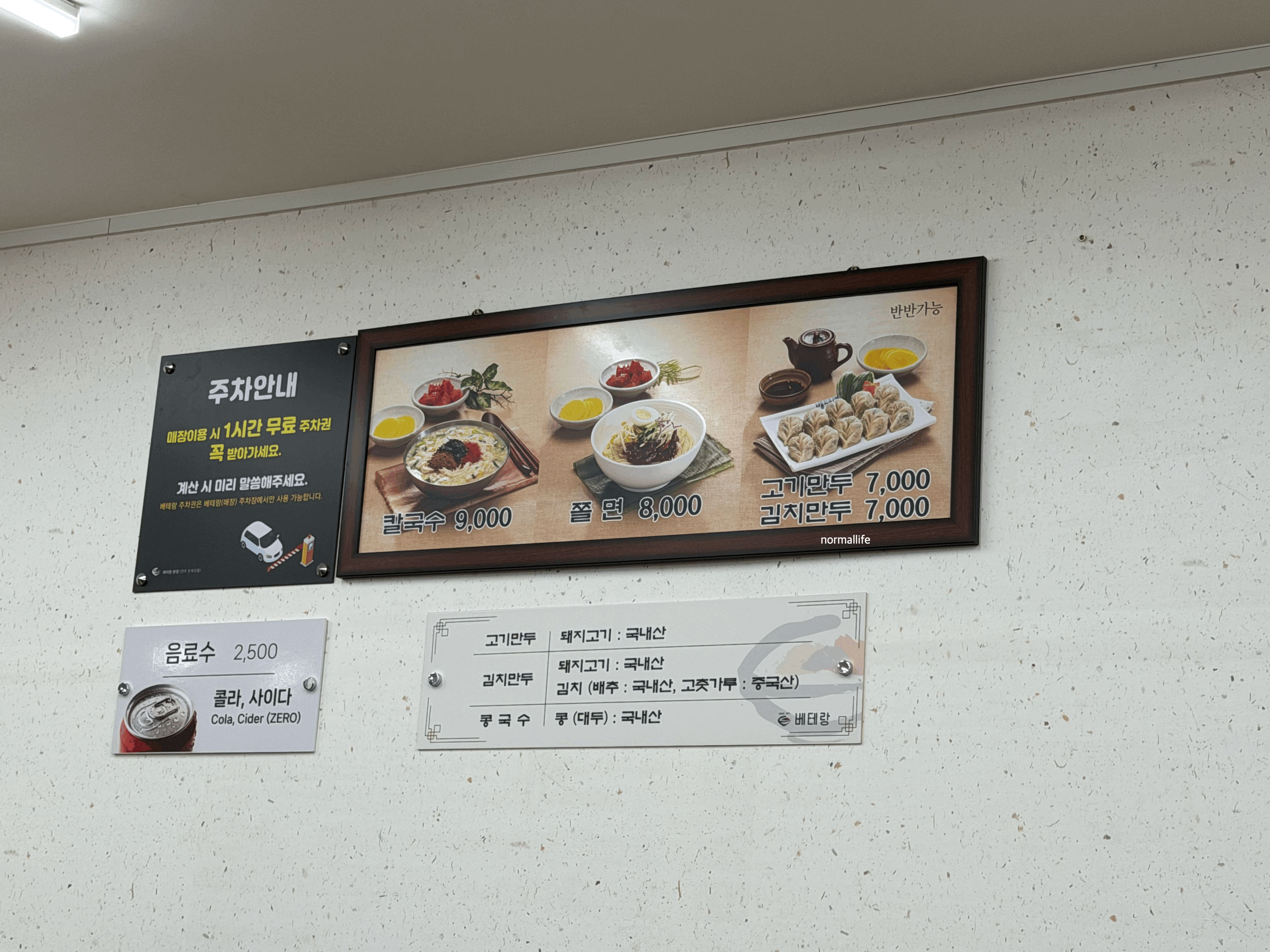 베테랑칼국수는 메뉴가 많지 않은 대신 대표 메뉴들이 확실하게 자리 잡고 있어 선택이 어렵지 않다. 고소하면서도 은은한 감칠맛이 나는 특유의 국물이 매력적인 시그니처 메뉴 #칼국수 9,000원 탱탱한 면과 상큼한 양념이 조화로운 #쫄면 8,000원 담백하고 속이 꽉 찬 #만두 7,000원이다. 콜라 사이다 2,500원이다.