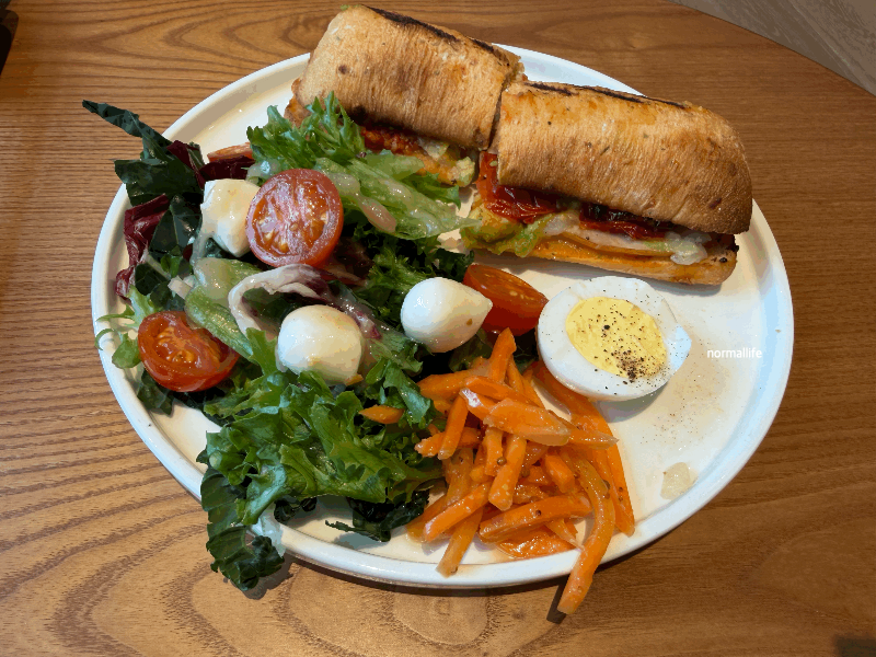 오븐에서 바삭하게 구워져 나온 아보카도치킨 루꼴라 파니니는 속은 촉촉하고 겉은 바삭했다. 담백한 치킨, 고소한 아보카도, 쌉싸름하지만 신선함 가득한 루꼴라, 치즈와 토마토가 더해져 브런치 메뉴로 딱이었다. 신선한 샐러드 양이 넉넉해 파니니와 함께 먹으니 영양 밸런스가 잘 잡힌 한 끼가 되었다. 함께 곁들인 아메리카노는 깔끔한 맛 덕분에 파니니와 너무도 잘 어울렸다.