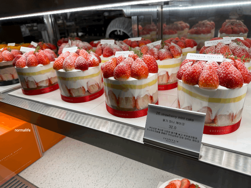 쇼케이스 안에서 가장 먼저 눈에 들어온 디저트는 단연 딸기 미니 케이크였다. 꾸드뱅 베이커스하우스 시즌 케이크는 제철 과일이나 계절감 있는 재료를 사용한다. 과일의 당도와 향이 가장 좋은 시기에 만들어지기 때문에 일반 케이크보다 신선함과 풍미가 뛰어난 것이 특징이다.