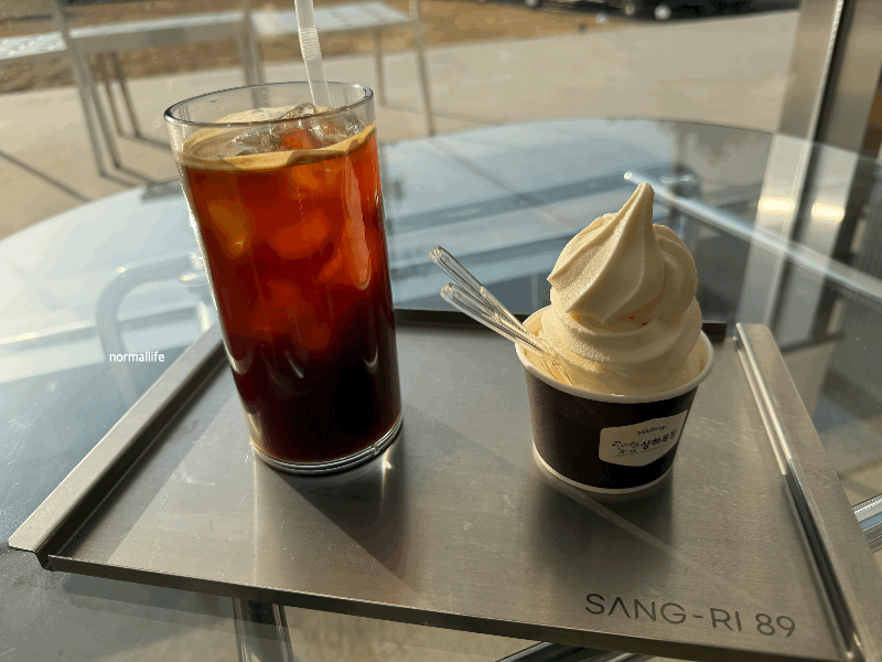 카페 상리89는 커피부터 논커피, 유기농 아이스크림까지 선택지가 다양하다. 상리만의 시그니처 아몬드 크림이 올라간 상리페너 7,000원 부드러운 씨솔트 카라멜 크림라떼 7,000원이다. 상하목장 유기농 아이스크림을 활용한 소프트 아이스크림 5,000원 수제 에이드와 티 종류까지 갖추고 있어 취향에 따라 골라 마시는 재미가 있다.