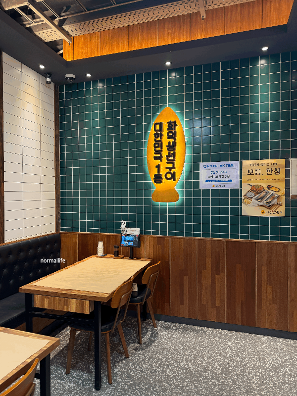 매장에 들어서자마자 고소한 생선 굽는 냄새가 가득했다. 식사 시간대라 그런지 매장 분위기는 활기찼지만 시끄럽지는 않았다. 전반적으로 매장은 깔끔하고 정돈된 분위기였다. 테이블 간 간격도 적당해 아이를 동반한 가족단위가 많아 보였다.