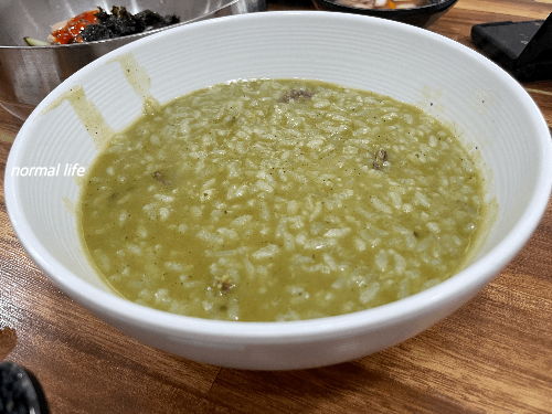 25분의 기다림 끝에 김이 모락모락 나는 진녹색의 #해녀전복집의 전복죽을 만났다. 전복 슬라이스가 아닌 전복 덩어리가 큼직큼직하게 들어가 있어 신선한 전복을 제대로 즐길 수 있었다. 넉넉히 들어간 해삼내장덕에 전복죽의 색은 진녹색이었으며 진하고 고소하며 부드러운 맛이었다. 단백질과 불포화지방산, 비타민 등 좋은 영양소 가득한 전복이 들어간 정성스러운 전복죽을 맛보니 막바지 여름을 잘 날 수 있을 것 기분이 들었다.