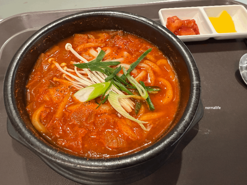 강렬한 붉은 국물색이 식욕을 자극하는 뚝배기김치우동을 주문해 보았다. 오동통한 우동 면발 사이사이로 김치 국물이 쏙 배어들어 있어 면만 건져 먹어도 심심하지 않았고, 아삭하게 씹히는 김치와 팽이버섯의 조화가 훌륭했다. 한국인이 사랑하는 특유의 시원하고 칼칼한 맛을 원한다면 뚝배기김치우동을 추천하고 싶다.