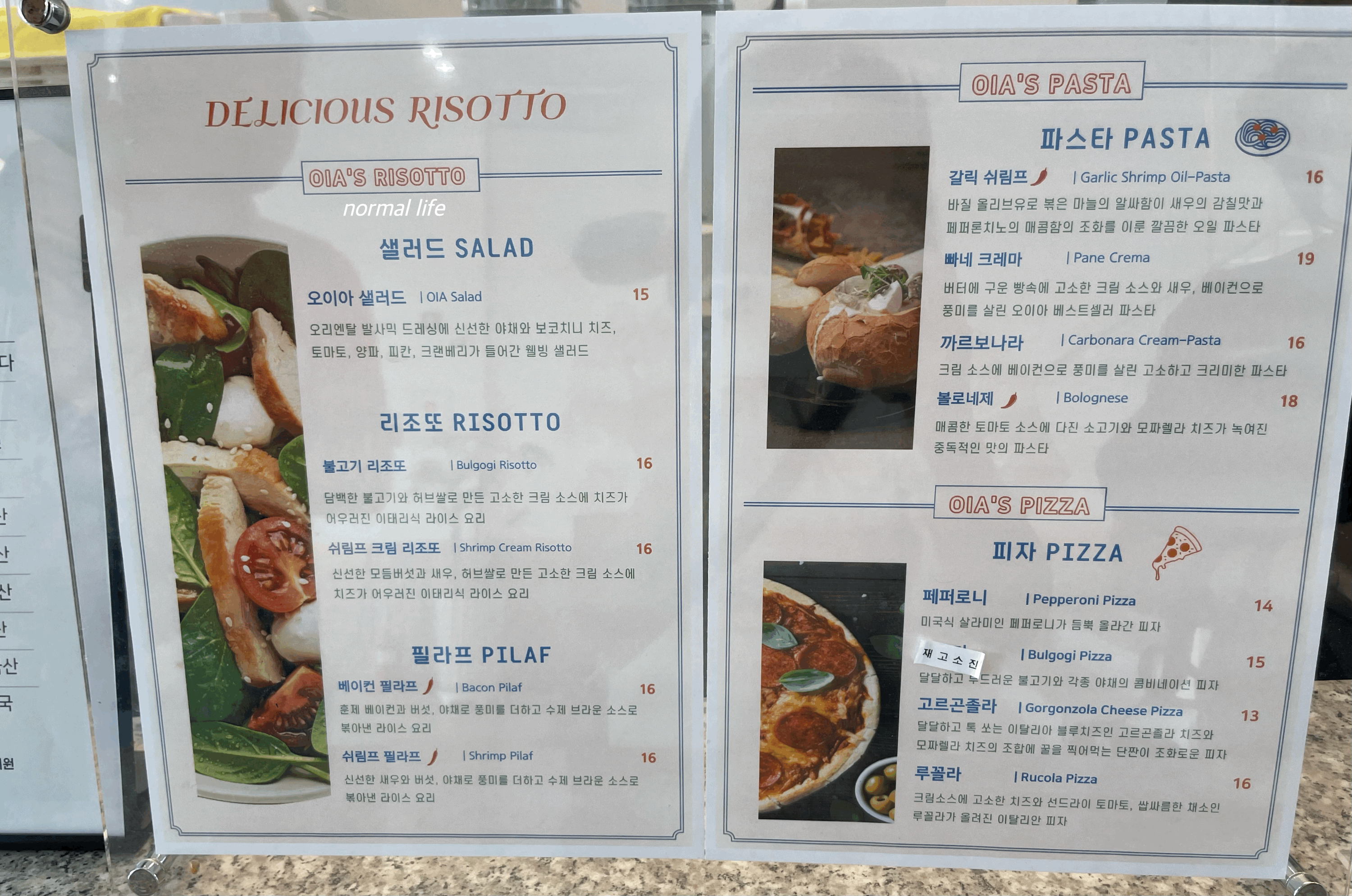 2. 오이아카페 메뉴와 가격
