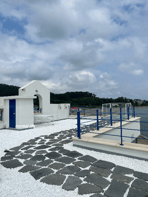 모든 곳이 그리스 산토리스 가득한 오이아카페이다. 루프탑마저도 포항의 아름다운 바다와 산토리니 새하얀건물과 잘 어우러져 이국적인 느낌이다. 야외테라스에는 파란하늘과 푸른바다를 바라보며 커피를 마실 수 있는 공간도 마련되어 있고 미니스카이워크 공간도 마련되어있다. 햇살좋은날 오이아카페 루프탑은 모든 곳이 지중해 휴양지이다.