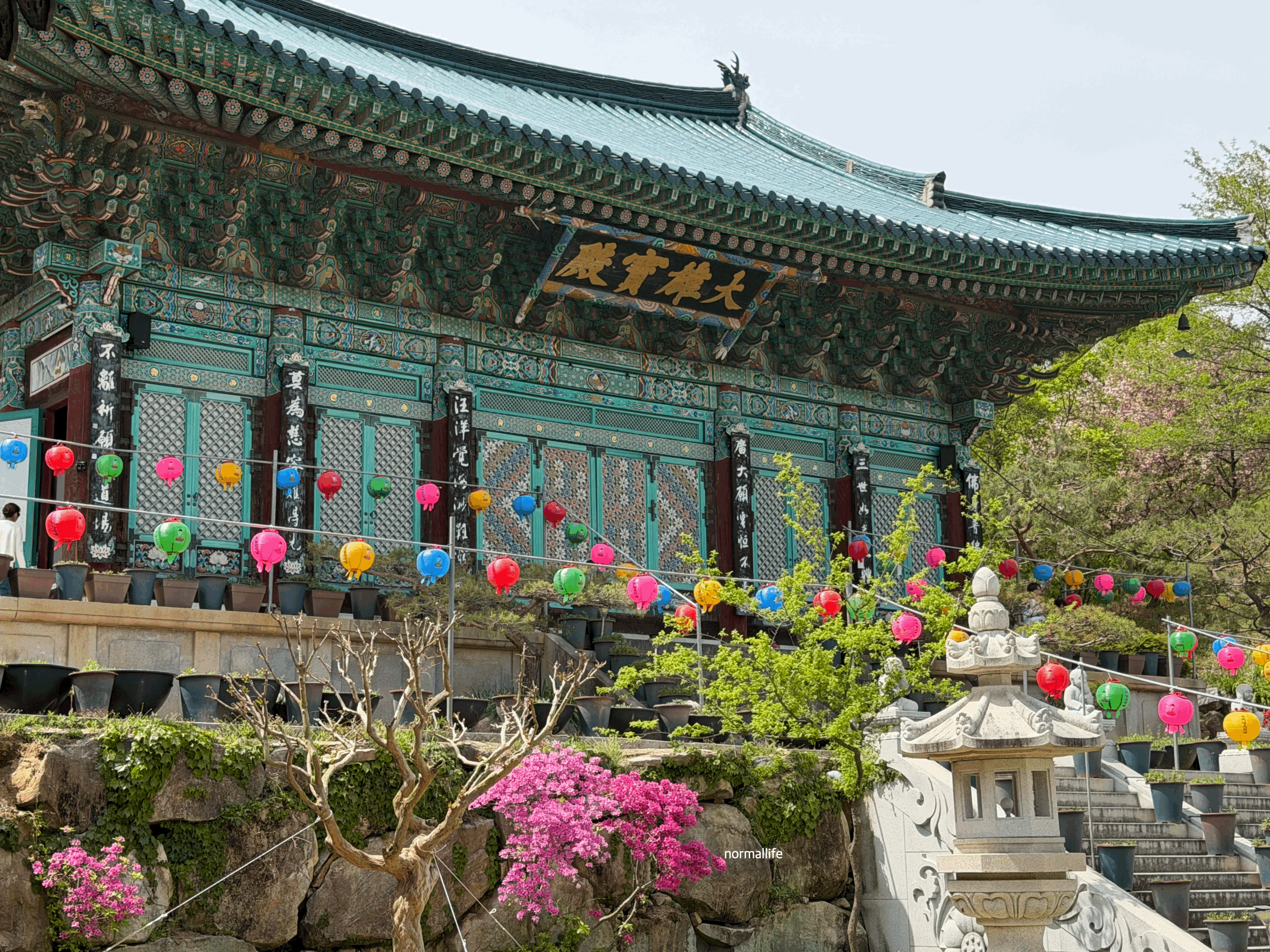 부처님 오신 날을 앞두고 줄지어 달린알록달록한 연등들이 산사의 고즈넉함에 화려한 생동감을 더해준다. 바람이 불 때마다 살랑이는 연등 아래를 걷다 보면 마음속 고민도 함께 날아가는 듯하다.