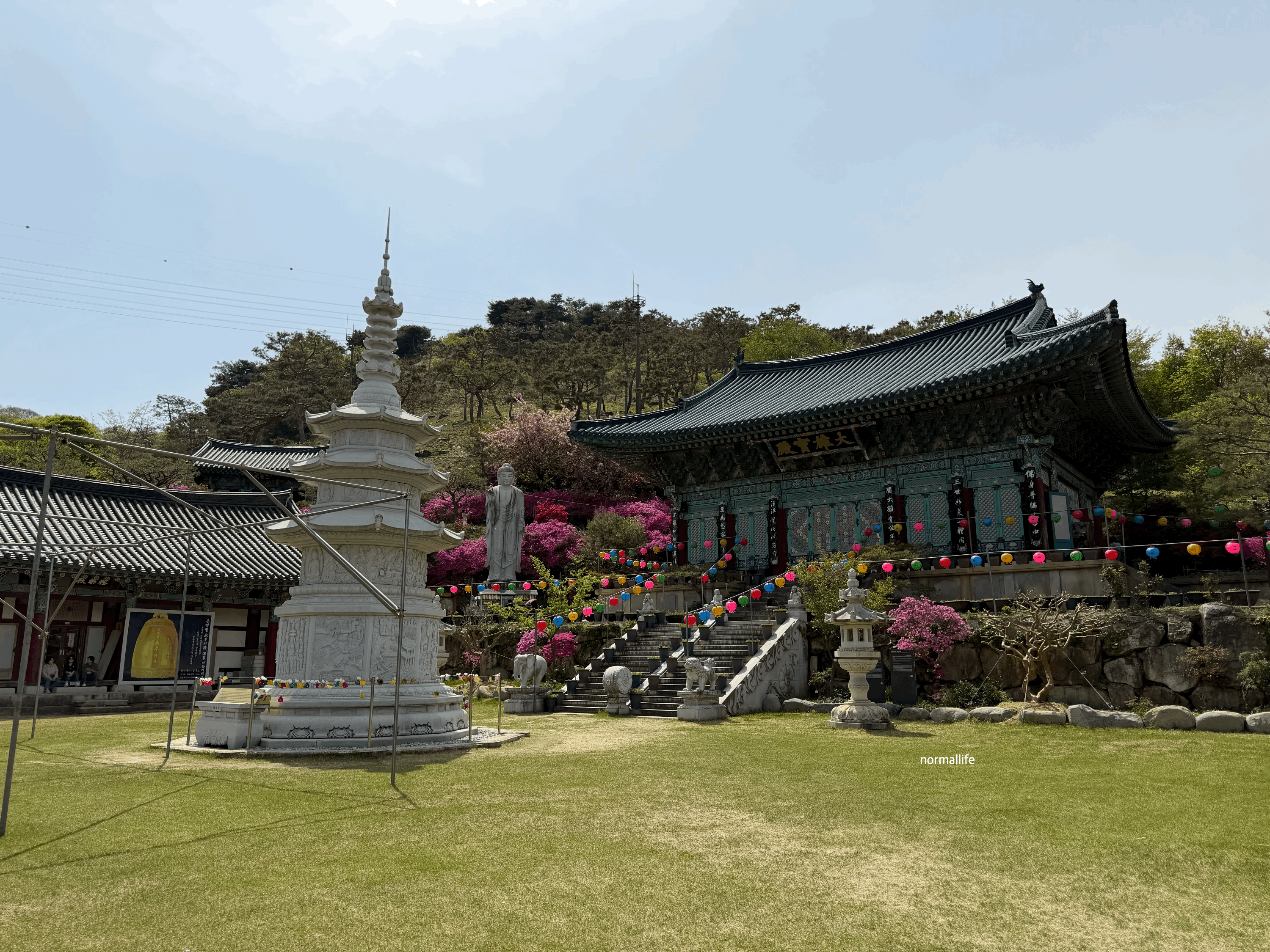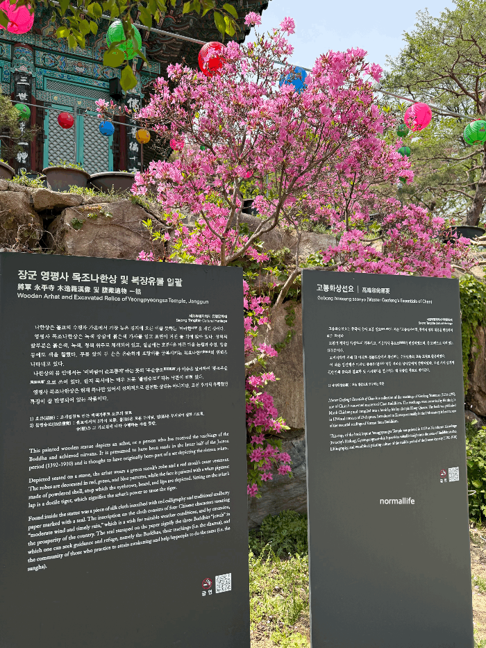 As you ascend the path above the Main Hall (Daeungjeon), you will encounter the rareGreen Cherry Blossoms (Cheongbeotkkot), offering a chance to admire a mysterious and ethereal hue seldom seen elsewhere in the country. With the royal azaleas also currently in full bloom around the temple grounds, the splendor of spring has reached its zenith at Yeongpyeongsa. I highly recommend visiting soon to experience this peak of floral beauty.