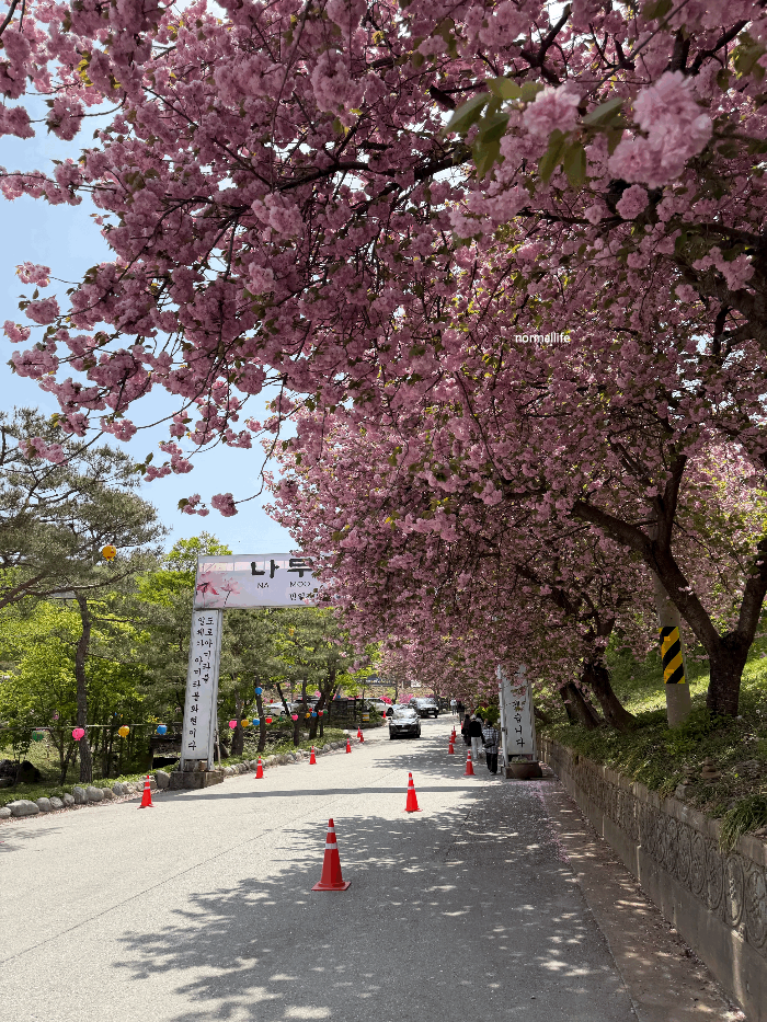 Typically, the double cherry blossoms at Yeongpyeongsa begin to bloom around April 20th—just as the regular cherry blossoms fade—and reach their most magnificent peak toward the end of April. These blossoms are larger and more densely layered than standard cherry blossoms, creating a voluminous, cloud-like landscape of vibrant pink.