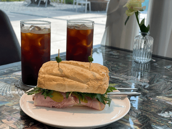 바삭한 바게트 안에는 넉넉한 잠봉과 두툼한 버터 뵈르, 그리고 신선한 루꼴라와 피클이 더해진 헤이다의 #잠봉뵈르의 맛에 사실 놀랐다. 공간별로 컨셉이 다른 헤이다를 구석구석 구경하는 사이 남편이 잠봉뵈르도 주문해 두었는데 고소한 버터의 풍미와 짭짤한 잠봉뵈르 맛은 훌륭했다. 카페의 공간뿐 아니라 맛과 퀄리티에도 신경 쓴 걸 느낄 수 있었다.