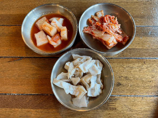 김치과 깍두기, 그리고 새콤달콤한 양배추 장아찌가 밑반찬으로 정갈하게 나온다. 국내산 돼지사골을 오랜 시간 푹 고아낸 뽀얀 고기육수와 쫄깃하고 부드러운 수육이 다섯 점 정도 올라가고 쫄깃한 면이 조화로운 국수요리이다. 1,000원을 추가하여 특으로 주문하였고 아이와 함께 먹고 싶다고 사장님께 말씀드리니 고기국수 고명으로 올라가는 특제양념인 빨간 양념은 따로 준비해 주셨다. 고기육수는 고기잡내가 하나 없었으며 고명으로 올라간 수육은 부드러워 3살 아이와 함께 먹기에도 좋은 식감이었다. 고기국수면을 다 먹고 아쉬워 공깃밥을 추가하여 나머지 고기육수까지 함께 만족스러운 고기국수를 맛보았다.