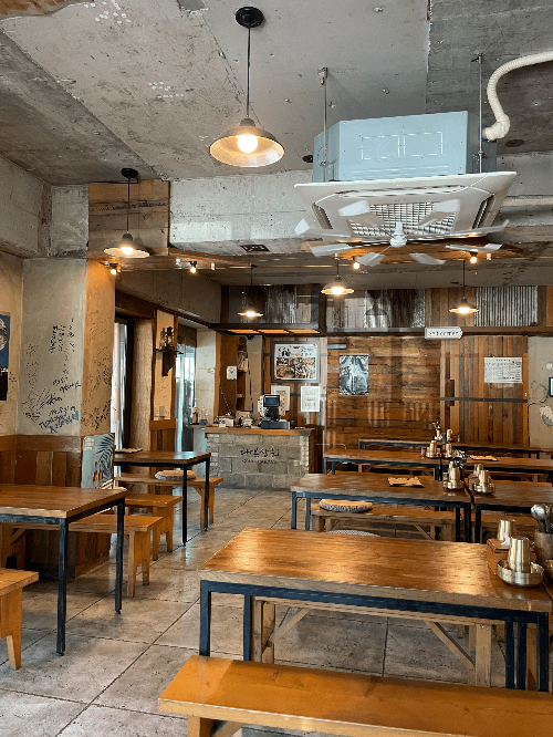 동학사 초입에 위치한 #대복상회는 추억과 낭만이 있는 고즈넉한 인테리어와 금요일과 토요일에는 7080 라이브콘서트가 열리는 그때 그 시절 과거감성을 불러일으키는 곳이다. 향수를 불러일으키는 분위기와 국내산 생고기와 돼지사골을 오랜 시간 푹 고아낸 진하고 깔끔한 #고기국수가 이곳의 대표메뉴이다. 제주도 특유의 국수요리인 고기국수 맛집답게 제주도 #한라산소주 #우도땅콩막걸리 #제주위트에일도 함께 맛볼 수 있다. 자극적이지 않고 진하고 깔끔한 육수와 쫄깃하면서도 부드러운 수육 덕에 가족단위의 손님들이 많아 보였고 아이 어른의 입맛을 모두 사로잡았다.