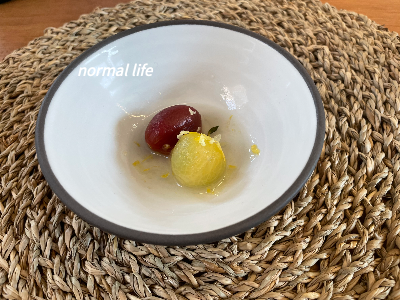 애피타이저로 내어주신 상큼 달달한 토마토마리네이트와 진한 사골수프.