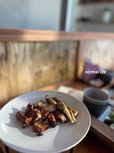 신선하고 질 좋아 보이는 돼지고기가 부위별로 준비되어 있었다. 삼겹살, 목살, 가브리살, 갈매기살, 관자놀이살을 야채와 함께 차례차례 맛볼 수 있다.