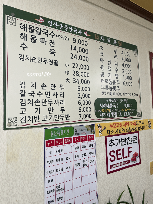 2. 연산 궁중해물칼국수 메뉴와 가격