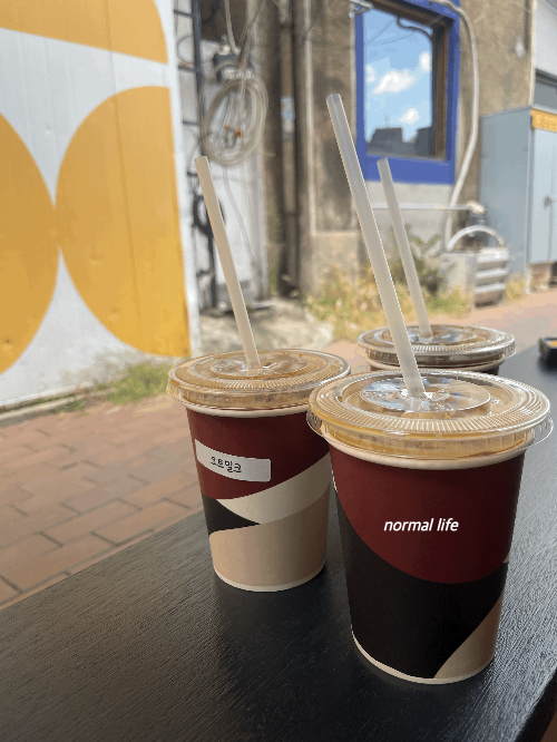 커피 한잔의 가치를 소중히 여기는 더기커피는 단순히 음료를 파는 공간보다는 경험과 문화를 제공하고 휴식의 공간을 추구한다고 한다. 매장 안이 크지는 않지만 차분한 분위기에서 커피를 즐길 수 있고 더기커피 매장 앞에 3명 정도 앉아서 동성로 골목감성을 즐길 수 있는 야외좌석도 마련되어 있다.
