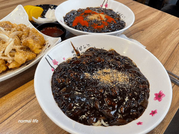 오이나 완두콩이 올라간 보통의 짜장면이 아닌 고소한 #깨소금이 올라가 짜장면이 테이블에 나옴과 동시에 고소한 향이 가득하다. 신선한 여러 가지 야채와 돼지고기가 듬뿍 들어간 적당한 #단짠의 짜장소스와 매장에서 직접 #면반죽과 #숙성을 거친 탱글 하면서도 쫄깃한 면발의 짜장면이었다. 테이블에 고춧가루가 준비되어 있어 매콤한 맛의 짜장면을 원하다면 기호에 따라 추가해서 맛볼 수 있어 좋았다.